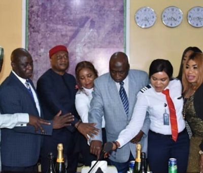 From Abuja, the aircraft flew into the Sam Mbakwe Cargo Airport, Owerri and touched down at 6.00 p.m., receiving another plume of water salute and warm welcome from passengers, airport workers and well-wishers. Other females involved in the operations were B1 Engineer, Justina Etim, who signed out the aircraft in Lagos and dispatchers Chisom Onyeakposi and Olubukola Olajiga. Ladi Amadu and Loretta Ekeh dispatched the flight in Abuja and Owerri respectively.