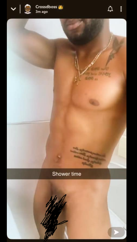 The video Cross shared came with the caption “Shower Time” and his tattoos and male organ was in full display.