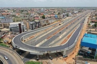 Accompanied by Abiola Ajimobi and Rotimi Akeredolu, his Oyo and Ondo counterparts, including Kayode Fayemi, governor of Ekiti, Ibikunle Amosun, governor of Ogun, Babajide Sanwo-Olu, governor-elect of Lagos, and Obafemi Hamzat, Ambode guided Buhari to inaugurate the 10-lane Oshodi–Murtala Muhammed International Airport Road.