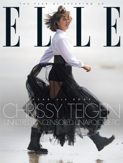Former super model, Chrissy Teigen is on the cover of the January edition of Elle UK dishing it out as real as she can on body confidence, examining reality versus social media as well as women now having a voice m ore than ever before in the industry. She also opens up about her five year’s marriage to her singer husband, John Legend.