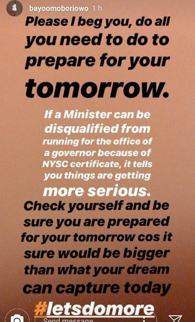 President Buhari’s personal photographer, Bayo Omoboriowo, is dish advise to Nigerian youths following the disqualification of the Communications Minister, Adebayo Shittu, from running for governor of Oyo state.  Yesterday, the APC National Working Committee, screened Adebayo out of the Oyo state governorship race because he did not have his NYSC certificate. The National Working Committee of the party took the decision based on the report of the party’s Governorship Aspirants Screening Committee, the APC said in a statement.