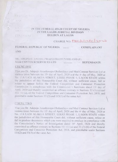 The trial which will take place at the Federal High Court, Ikoyi is between Anu who likes to refer to herself with the appellation, Dr and the Federal Government. The prosecution is led by Babatunde Irukera, the CEO of FCCPC