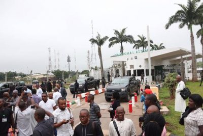 Operatives of the Department of State Services (DSS) earlier today blocked all the entrances into the national assembly. The operatives turned away ca