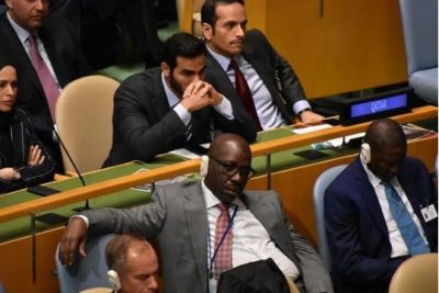 Edo State governor, Godwin Obaseki was captured dosing off while President Muhammadu Buhari was delivering a speech at the United Nations General Assembly (UNGA) on Tuesday. Buhari was the 14th speaker at the conference.