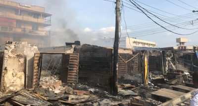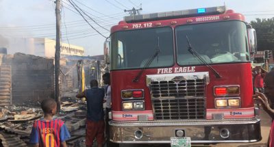 Goods worth millions of naira as well as the shops housing them have been destroyed in a fire outbreak at a building housing multiple shops on Shonola Street in Aguda-Ogba area of Lagos State. The fire was said to have started from a hairdressing salon before it extended to other parts of the building. A young lady was said to have been fuelling a generator while it was on when the container of the fuel caught fire.