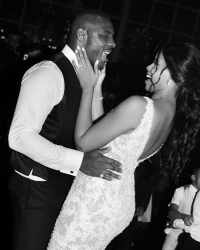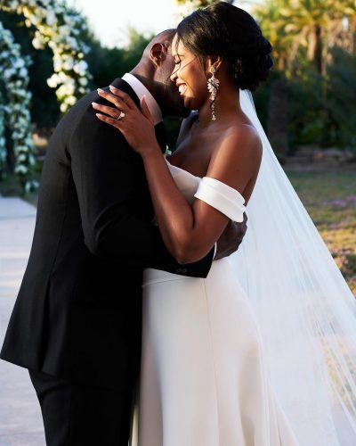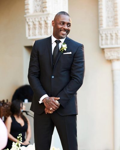 Sabrina, opted for two exquisite dresses by Vera Wang for her big day – a bardot style gown for the ceremony and a pearl embroidered number for the reception while 46 year old Idris, 46, looked dapper in a bespoke suit by Ozwald Boateng.
