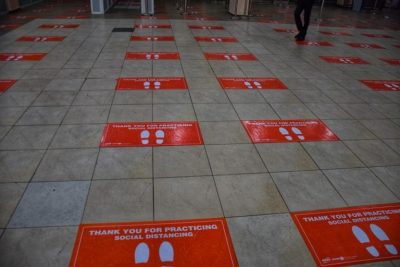 Screening for high temperature, a major symptom of COVID-19, was also being done while signs were indicated on the floor at strategic points to enforce social distancing. Hand sanitisers were also kept at various points, though passengers were not being compelled to use them.