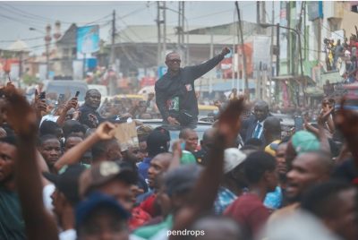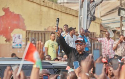 “We just arrived at the Alaba international market to an awesome reception. We’re pondering what the rally will be like. LP is Finishing Strong. Salute to all Obidients and the Nigerian Youths.- PO”