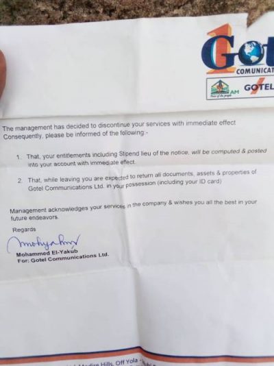 Forty-six staff of Gotel Communications, a media outfit owned by Nigeria’s former Vice President, Atiku Abubakar, have been sacked by the organization, according to SaharaReporters.
