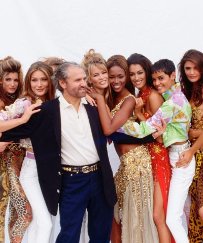 Gianni Versace solidified the rise of the supers with his autumn/winter 1991 show, which set a new standard for fashion shows and transformed them into a spectacle worthy of lasting cultural impact. A host of the supers walked the runway, and for the finale, Campbell, Crawford, Turlington and Evangelista — who had all just appeared in Michael’s Freedom 90 music video — came out lip-synching to the song.