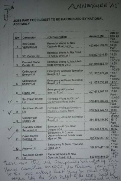 The Niger Delta Development Commission has listed 23 companies that benefitted from contracts awarded by the commission. These companies allegedly provided by the National Assembly to the NDDC to award contracts before the lawmakers could harmonise the 2019 budget of the commission.