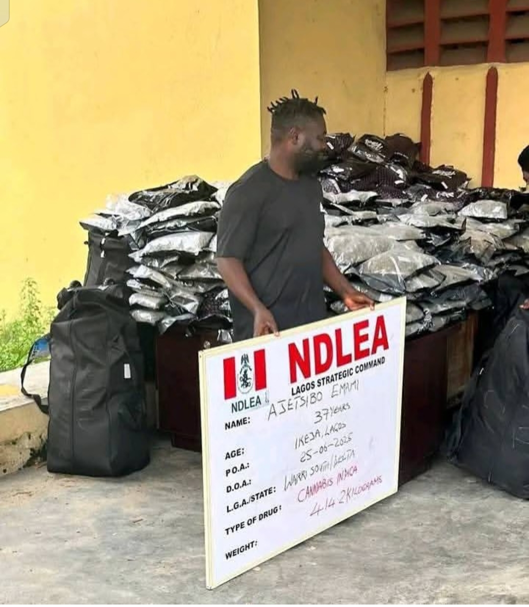 The National Drug Law Enforcement Agency (NDLEA) has arrested Emami Ajetsibogho, popularly known as Warri Kinsman, over the alleged smuggling of 414.2 kilograms of cannabis sativa.