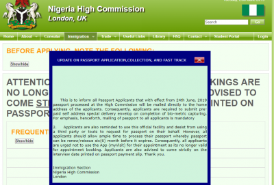 A notice on the website of the Nigeria High Commission in London, confirmed that they will now mail passports to applicants. It reads;
