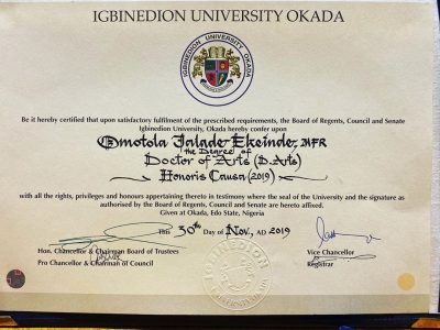 Actress, Omotola Jalade-Ekeinde has added another feather to her cap. The mother of four was on Saturday awarded a honourary doctorate degree of arts from the Igbinedion University, Okada, Edo State.