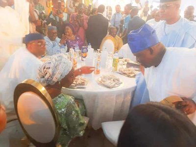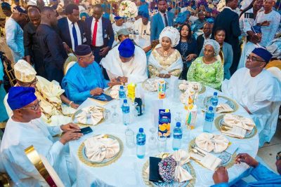 One of the highlights of the event was the meeting of two former feuding governors of Ogun state, the father of the groom and the immediate past governor, Senator Ibikunle Amosun. Also, the sitting governor, Dapo Abiodun was very much present. This occasion will be the first time the three are meeting in public after the election that brought Dapo Abiodun to power.