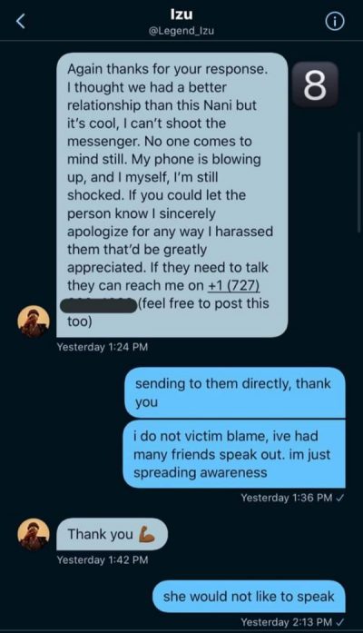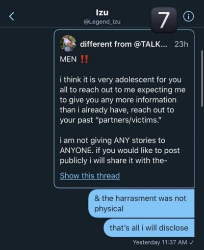 Izu Madubueze, who was said to have been on the list, had reached out to the lady to find out whom his accuser was so he could clear his name. The curator of the said list was however said to have refused to disclose the victim’s identity, claiming the victim would prefer to remain anonymous.