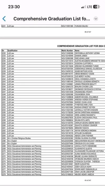 A source at NOUN who craved anonymity confirmed that Anyim graduated from the institution and that her name was on the graduation list for 2024.