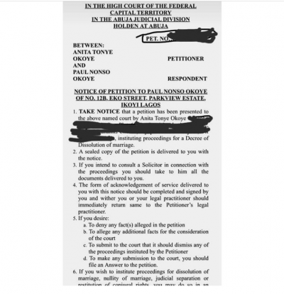 Despite the fact that the couple openly celebrated their seventh wedding anniversary in March, all that didn’t matter as an official petition citing irreconcilable differences as the basis for divorce has been filed at an Abuja court by Anita.