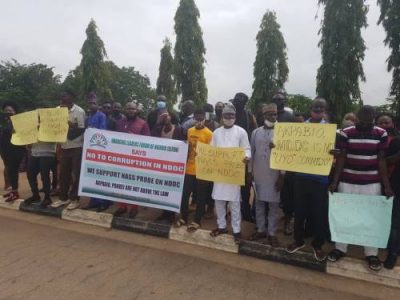 A group of protesters, one of which is Emerging Leaders Forum of Nigeria, earlier today, staged a protest at the National Assembly, Abuja, calling for the probe and removal of Minister of Niger Delta Affairs, Godswill Akpabio, over the illegal expenditure and mismanagement in the Niger Delta Development Commission.