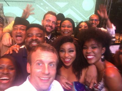 President Macron with Chika Okpala, Rita Dominic, Lala Akindoju, Kide Kosoko, Kunle Afolayan, Joke Silva, Dakore Akande