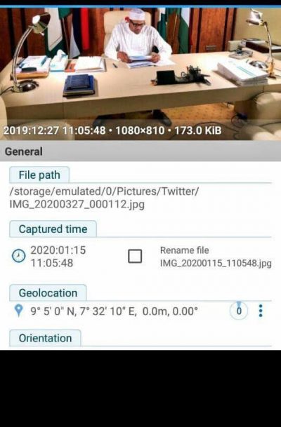 The picture had as caption, “President @MBuhari; still at work!” he said.