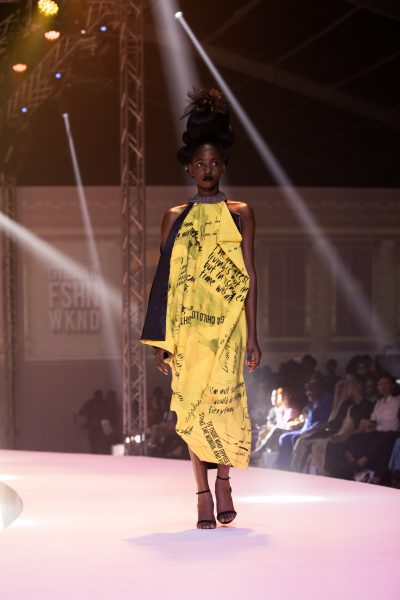 Taibo Bacar: This would be the third time Taibo Bacar will showcase at the fashion event. His collections have made quite an impression on fashion enthusiasts who looked forward to what he had to offer this year. And he didn’t disappoint. The dress and bag designer from Mozambique had quite an impressive collection which was old Hollywood glam and accessorized with his leather handbags.