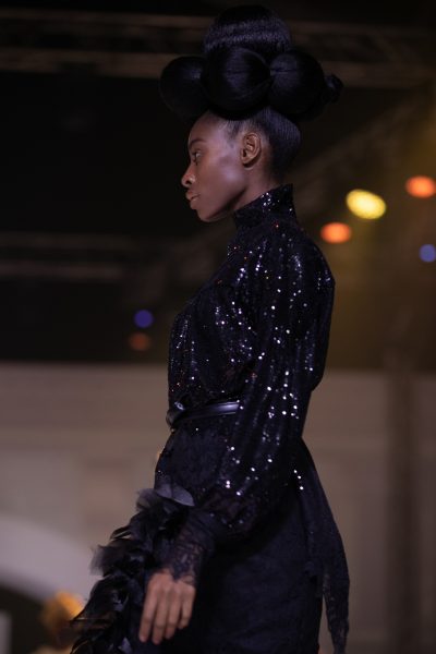 Lanre Dasilva Ajayi: One of Nigeria’s favourite designers, Lanre opened the runway show on the second day. Famed for her vintage style, Lanre didn’t disappoint as she flooded the runway in pieces made of velvet, silk, chiffon, sequins, metallic on a large scale, all in vintage silhouettes. The addition of hair pieces added character to the collection.