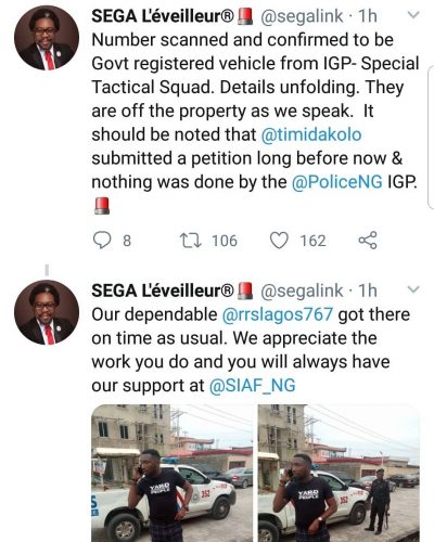 #EndSARS campaigner, Segun Awosanya tweeted that the policemen sent to “abduct” Timi Dakolo and Busola, are now under investigation. See his tweets below: