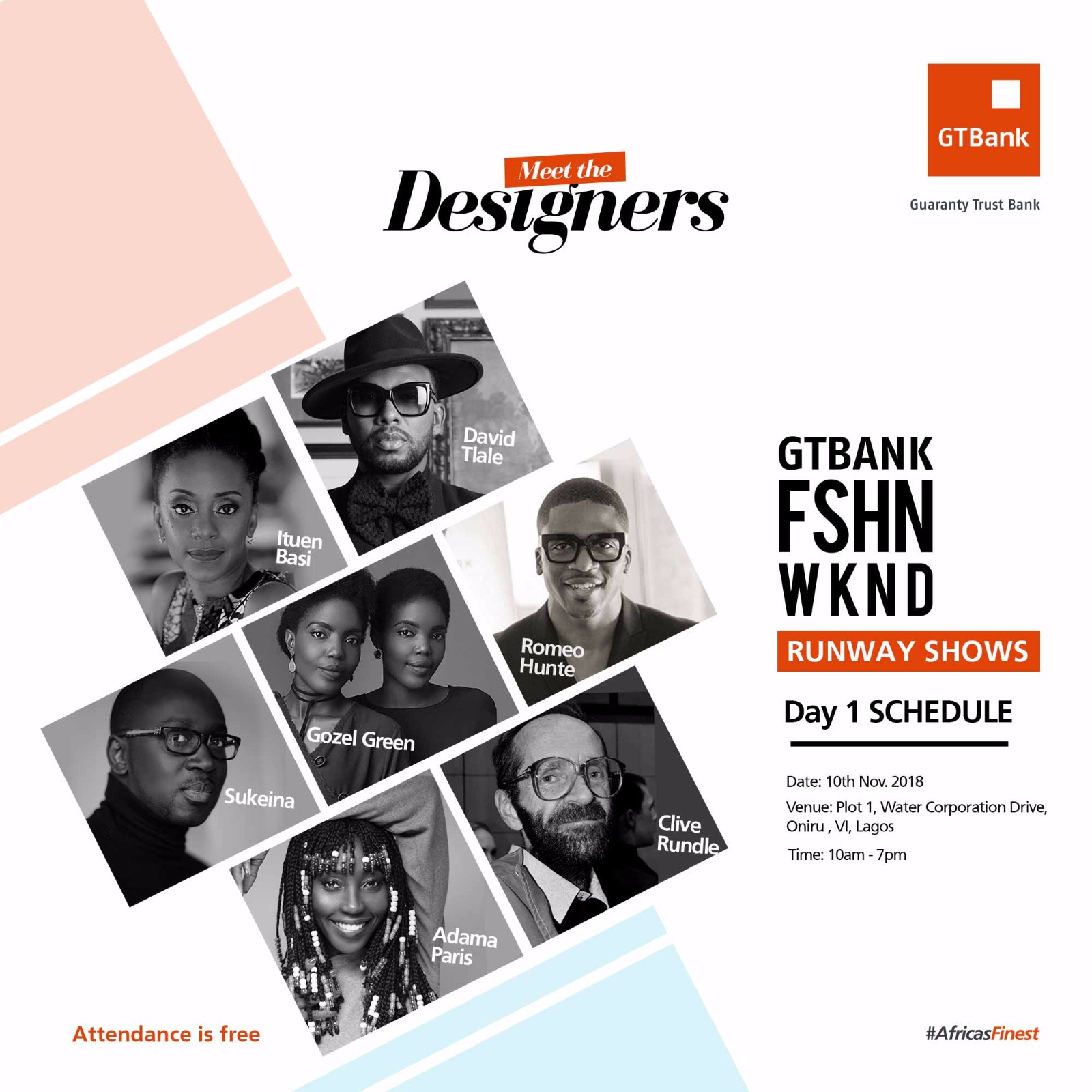 On Saturday, November 10th, and Sunday, November 11th, 2018, thousands of guests will be entertained by indigenous and internationally renowned designers who will showcase their brands on the runway. These are the designers slated for Day 1 of the 2018 GTBank Fashion Weekend: