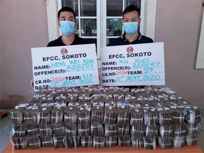 Recall that the Economic and Financial Crimes Commission (EFCC) on Tuesday May 12, confirmed the arrest of two Chinese nationals for allegedly attempting to offer N100 million bribe to the commission’s Sokoto zonal head of operations, Lawal Abdullahi and his team.