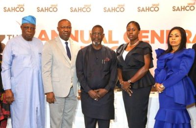 SACHO executives; Oluropo Owolabi, Non-Executive Director, Skyway Aviation Handling Company, SAHCO, PLC; Basil Agboarumi, Managing Director/CEO, SAHCO, Taiwo Afolabi , Chairman, SAHCO, Jesuyemisi Odeyemi, Company Secretary, SAHCO, Boma Ukwunna, Executive Director, Cargo Services, SAHCO PLC