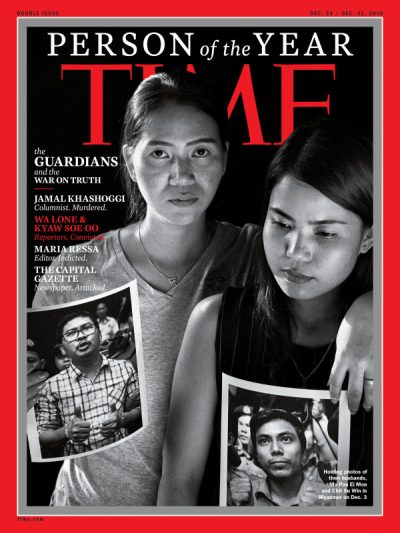 Reesa co-founded the online website, the Rappler, which has aggressively covered the government of Philippines President Rodrigo Duterte. She was recently charged with tax fraud, with many in the Philippines seeing that as a reaction to the Rappler’s reporting. Wa Lone and Kyaw Soe Oo were imprisoned after investigating a massacre of Rohingya Muslims. Four journalists and a sales assistant were killed by a gunman at the Capital Gazette newspaper last spring.