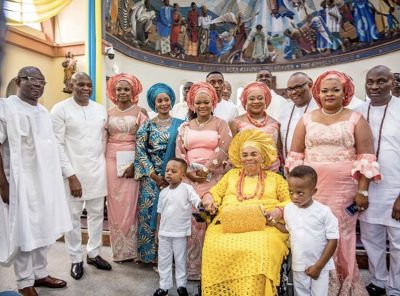 The Chairman of United Bank for Africa, UBA and HEIRS Holdings, Tony Elumelu, over the weekend hosted a superlative reception to celebrate the 90th birthday of his mother, Suzanne Elumelu. The event which kicked off with a thanksgivings service at the Church of Assumption, Falomo, Ikoyi, was then followed by a reception at Harbour Point in Victoria Island. Joined by his siblings: Peter, Ndudi, Loretta and Agatha, Tony Elumelu saw to it that the celebrant had a most memorable moment at the event.