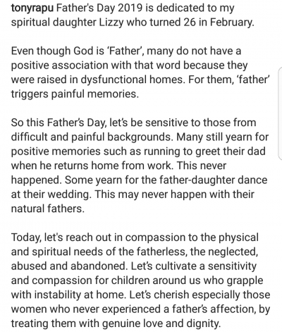 For his father’s day eulogy, Pastor Tony Rapu, the Senior Pastor of House of Freedom, shared on his social media page, beautiful transformation photos
