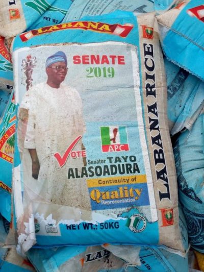 According to eyewitnesses, the truck with full load of customized bags of rice with the picture, name and logo of the senator who is re-contesting his seat in the National Assembly on the platform of the All Progressives Congress, APC, Senator Tayo Alasoadura had crushed two vehicles before it rammed into some shops Sympathisers, fire fighters, officers of road safety and the police engaged in the rescue operations which lasted till midnight. Bodies of the victims have been deposited in the mortuary.