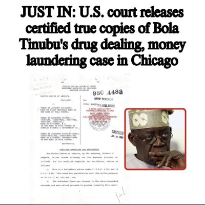 United States District Court for the Northern District of Illinois has released fresh documents holding Bola Tinubu’s encounter with American authorities over allegations of narcotics trafficking and money laundering.
