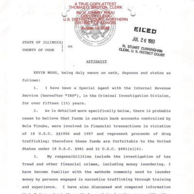 United States District Court for the Northern District of Illinois has released fresh documents holding Bola Tinubu’s encounter with American authorit
