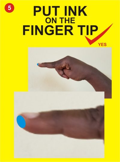 “Put it in that small space and leave and standby until they count your vote. Because if you use your thumb finger, it will spill over to another line. They said they will void the vote. If you use too much ink, a blot to another party creates a problem.”