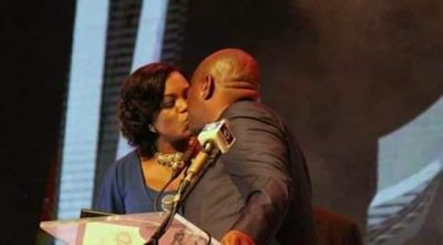 The governor and his wife kissing passionately after he won the Silverbird
