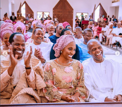 On Saturday, February 22nd, vice president, Yemi Osinbajo threw a modest white wedding ceremony for his lawyer son, Laolu who officially tied the knot with his girlfriend, Sekemi. Quite a handful of dignitaries attended the ceremony. The couple had during the week, held their traditional/engagement ceremony.