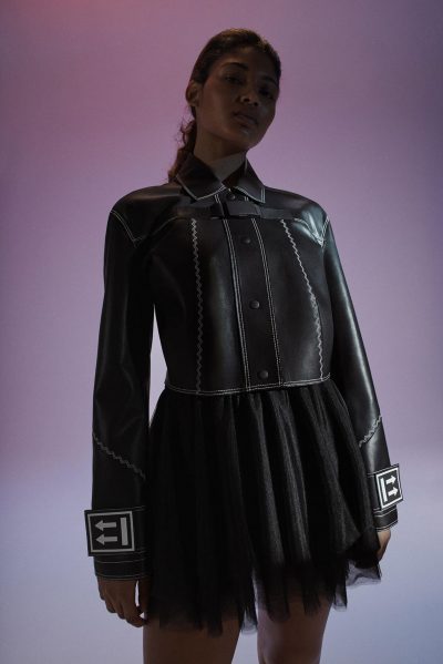 Breaking away from the traditional white tennis kit, the dresses come in black and purple, and have a ballerina-esque silhouette that draws on Williams’ interest in dance.  Additional quirks added to the clothing include the word “logo” emblazoned in capital letters and quotation marks above the Nike tick on the breast. “SERENA” is also written on the arms, following Abloh’s signature quotation-style slogans. Among Williams’ pick of three sneakers is an updated version of the NikeCourt Flare 2, which were first designed for the tennis champion in 2016. The other two are updates of the footwear featured in Abloh’s The Ten; a collection of 10 Nike footwear classics that he redesigned last year.