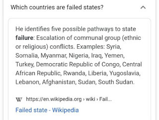 Wikipedia, the free web-based encyclopedia project which contains information on a wide variety of subjects, has updated their list of failed states with the inclusion of Nigeria. It described a failed state as a political body that has disintegrated to a point where basic conditions and responsibilities of a sovereign government no longer function properly.