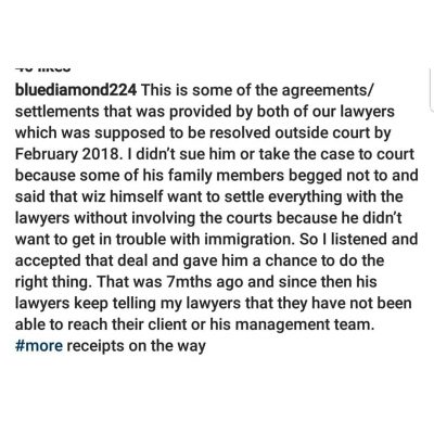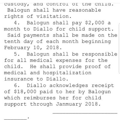 The document, an agreement they both signed, shows that Wizkid is expected to pay the sum of $2000 monthly for child support. However, Binta revealed that since the agreement took effect in February 2018, Wizkid has reneged on the agreement and every move made to reach him through his lawyers have proved abortive as his legal team insists that they haven’t been able to reach him as well. She revealed that she has refused to sue him because his family members begged her so as avoid him from having immigration issues.