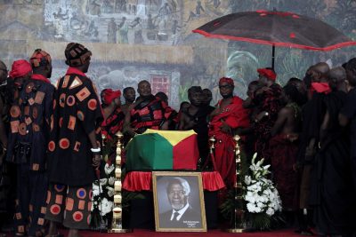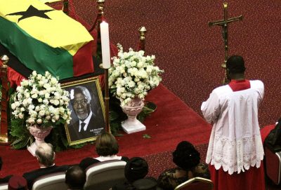Mourners in traditional black and red attire filled the main hall of the Accra Conference Centre, which sits about 4,000 people. More watched proceedings on a giant screen in an auditorium just outside the hall.  There have been hymns and a performance by soprano and human rights campaigner Barbara Hendricks.  Annan’s nephew Kojo Amoo-Gottfried read the eulogy, describing how he had led a hunger strike in his secondary school to protest against the quality of food in the dining hall.